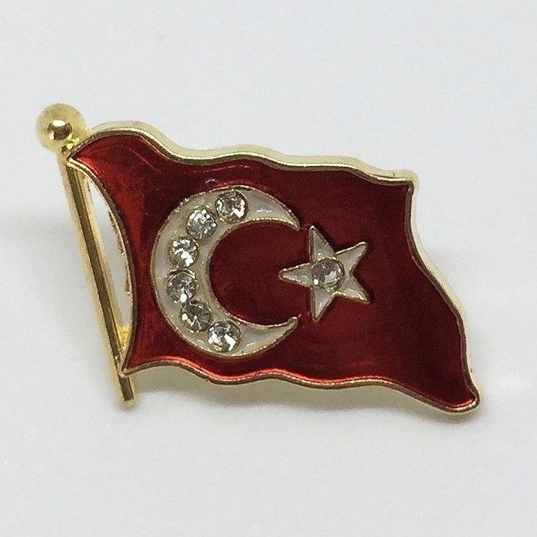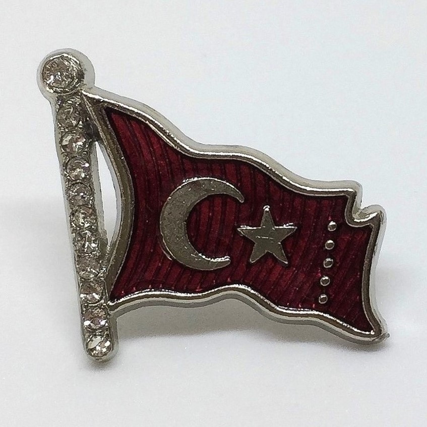 Türk Bayrağı Yaka Rozeti - Taş İşlemeli